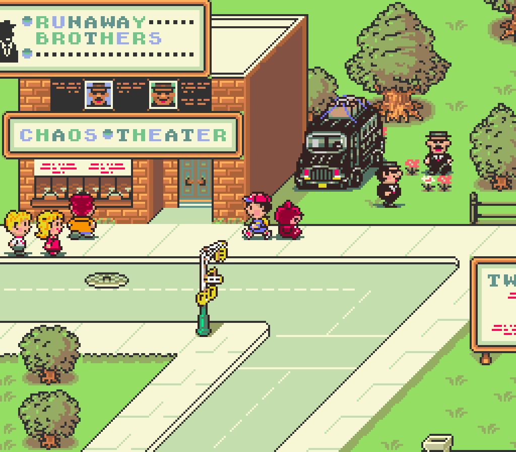 Nintendo’s own shot at an in-house JRPG was typically atypical. Instead of a vaguely medieval setting with the occasional firearm or spaceship, Earthbound elected for modern-day quirkiness. The game was like a funhouse mirror version of America steeped in references to Western media that were woefully outdated for its target audience, e.g., the Beatles and Blues Brothers, 50’s sci-fi flicks, the Little Rascals, etc.