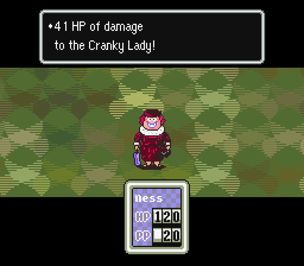 Psychedelic backgrounds where one combats the elderly: welcome to Earthbound.