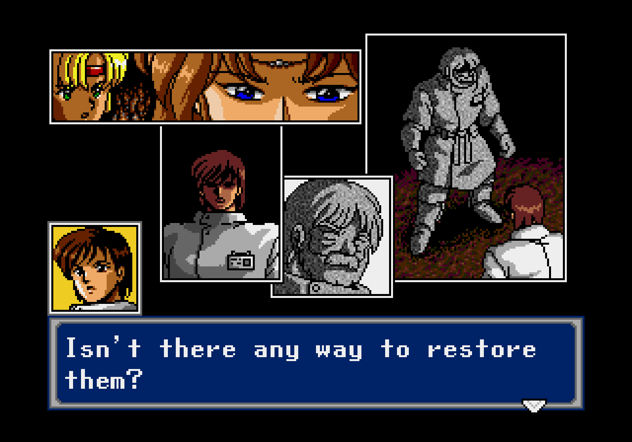 Phantasy Star was Sega’s main JRPG for their other console, the Mega Drive, and The End of the Millenium was the final entry in the series. Despite not relying on a CD-ROM for storage, it featured lots of animated characters and enemies, and copious amounts of pixel art stills for its manga-esque cinematic sequences.